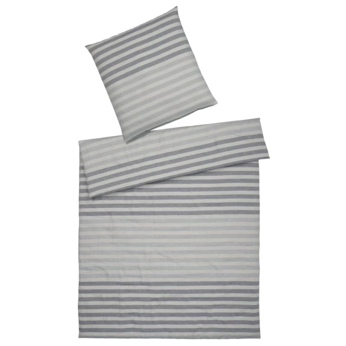 Kuschelig weich im klassischen Streifenlook – die Bettwäsche Clear aus dem Hause elegante überzeugt auf ganzer Linie! Die Herstellung aus Baumwolle und Leinen, welche zu feinen Halbleinen verarbeitet wurden, sorgt für die hervorragenden Materialeigenschaften des Stoffs. Er ist wunderbar weich, gleichzeitig atmungsaktiv und liegt angenehm auf der Haut. Mithilfe eines verdeckten Reißverschlusses können Sie den Bettdecken- und Kissenbezug auf ein Inlet Ihrer Wahl ziehen. Selbstverständlich sind die Bezüge waschmaschinen- und trocknergeeignet. Bestellen Sie die Bettwäsche-Garnitur Clear von elegante in einer von vielen Größen und Farben und erfreuen Sie sich jede Nacht an Qualität und Design!