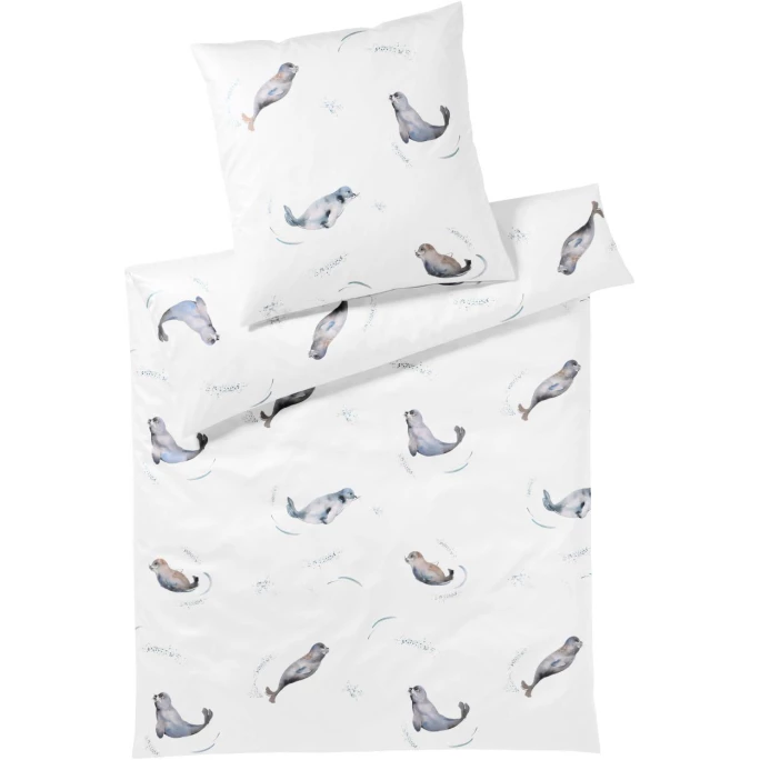 Kleine putzige Seehunde, die sich morgens schon auf Ihrem Bett tummeln, das erwartet Sie mit der Bettwäsche Seals von elegante. Die kleinen possierlichen Tierchen sind auf 100% Baumwolle gedruckt, die Ihnen höchste Mako-Satin Qualität zum Einkuscheln und Durchschlafen bietet. Genießen Sie den Anblick der Gute-Laune Motive beim Einschlafen und Aufwachen. Diese fröhliche Bettwäsche Seals bieten wir Ihnen in den gängigen Bettdecken Größen mit Kissenhülle und wenn Sie möchten, können Sie die Kissenbezüge auch einzeln bestellen. Dank einem Reisverschluss lassen sich alle Teile leicht abziehen und wieder neubeziehen. Erleben Sie eine kuschelige und komfortable Nacht, mit der hochwertigen Qualität von elegante.