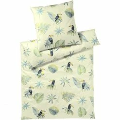 Ein bisschen Dschungel Feeling bekommt man beim Anblick dieser wunderbaren Tukan Vögel zu spüren. Die besondere Bettwäsche von elegante trägt den passenden Namen Tukan und mit den zusätzlich bedruckten Dschungelblättern, kann man sich in den Urwald träumen. Dabei müssen Sie auf keinerlei Komfort verzichten, das Material von elegante Tukan besteht aus 100 % Baumwolle und das Mako-Satin Gewebe schimmert leicht glänzend. Lassen Sie die luftige und leichte Bettwäsche Sie einwickeln und in einen angenehmen Schlaf begleiten. Bei der großen Auswahl an Größen, sollten Sie auch die passenden Überzüge für Ihre Bettdecke finden. Wünschen Sie sich ein paar Kissenhüllen mehr, auch das ist ein Einfaches. Stöbern Sie in unserem AMBIENDO Shop und stellen Sie sich Ihre Bestellungen, nach Wunschfarbe und Wunschgröße zusammen.