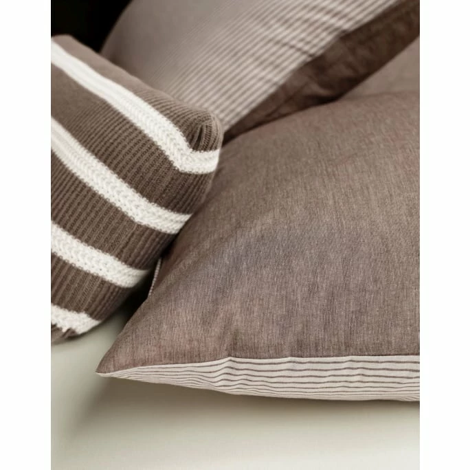 Elegantes Design für Ihr Schlaf- und Gästezimmer! Mit dieser schicken Bettwäsche-Kollektion Skei aus dem Hause Marc O’Polo setzen Sie stilvolle Akzente und hüllen sich in höchste Qualität. Das Design ist dezent und durch die sehr feinen Streifen doch etwas Besonderes. Die Wende-Bettwäsche ist eine Kombination aus 45% recycelter Baumwolle, 40% reiner Baumwolle und 15% recyceltes Polyester und sorgt für einen wunderbar weichen und langlebigen Bettbezug. So liegt das Material wunderbar weich und anschmiegsam auf Ihrer Haut. Die Bezüge lassen sich mittels eines Reißverschlusses auf eine Füllung Ihrer Wahl ziehen. Zum Reinigen stecken Sie die Bettwäsche einfach in die Waschmaschine und den Trockner. Bei AMBIENDO erhalten Sie die Kollektion Skei in unterschiedlichen Größen und Farben. Wählen Sie die passende für sich aus und erfreuen Sie sich immer wieder am Qualitätsprodukt von Marc O’Polo!