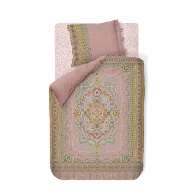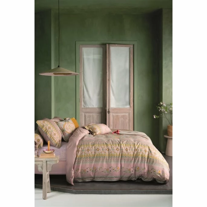 Mit der romantischen Wendebettwäsche-Garnitur Majorelle Carpet des niederländischen Labels Pip Studio verzaubern Sie Ihr Schlafzimmer im Handumdrehen in eine farbenfrohe Wohlfühl-Oase! Inspiriert von antiken und traditionellen Teppichen, erhielt das Design von Pip Studio ein Makeover. Bunte Blumen auf einem weich gefärbten Hintergrund verleihen der Bettwäsche einen Vintage-Look mit einem zeitgemäßen Touch. Die Rückseite präsentiert sich im Kontrast dazu mit einer tonalen Streifenmusterung. Der Kissenbezug verfügt über einen einzigartigen Bänderverschluss und der Bettdeckenbezug ist mit einem Reißverschluss versehen, welcher ein komfortables und schnelles Ab- sowie Beziehen ermöglicht. Die anschmiegsame Wende-Bettwäsche besteht aus 100% feinfädigem Baumwoll-Perkal und ist hautsympathisch sowie äußerst pflegeleicht. Wir bieten Ihnen die hochwertige Perkal-Bettwäsche in verschiedenen Farbvarianten und unterschiedlichen Größen in unserem AMBIENDO Shop an. Genießen Sie mit der komfortablen Wendebettwäsche Majorelle Carpet von Pip Studio entspannte Stunden im Reich der Träume!