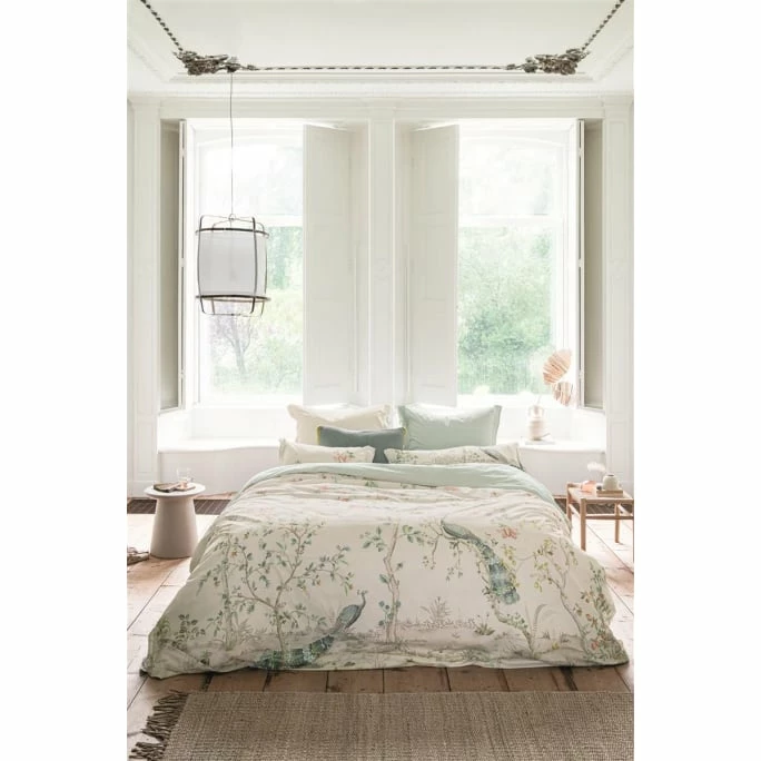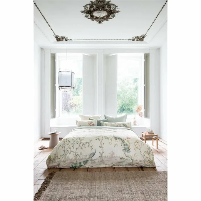 Edel im Design und hochwertig in der Verarbeitung präsentiert sich die designstarke Bettwäsche Okinawa von Pip Studio. Diese romantische Bettwäsche ist von orientalischen Chinoiserie-Prints inspiriert. Japanische Blüten verzieren die Bezüge und die zarten Farben sorgen für eine ruhige aber dennoch elegante Ausstrahlung auf Ihrem Bett. Die Kissenbezüge verfügen über eine elegante Oxford-Bordüre. Auf der Rückseite haben die Bett- und Kissenbezüge einen stilisierten geometrischen Print. Der Kissenbezug verfügt über einen einzigartigen Bänderverschluss und der Bettdeckenbezug ist mit einem Reißverschluss versehen, welcher ein komfortables und schnelles Ab- sowie Beziehen ermöglicht. Die anschmiegsame Wende-Bettwäsche besteht aus 100% feinfädigem Baumwoll-Perkal und ist hautsympathisch sowie äußerst pflegeleicht. Wir bieten Ihnen die hochwertige Perkal-Bettwäsche in verschiedenen Farbvarianten und unterschiedlichen Größen in unserem AMBIENDO Shop an. Genießen Sie mit der komfortablen Wendebettwäsche Okinawa von Pip Studio entspannte Stunden im Reich der Träume!