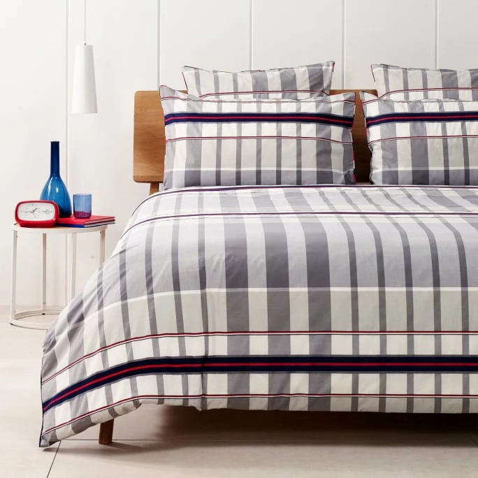 Der exklusive Kopfkissen-Bezug XXL Checks von Tommy Hilfiger beeindruckt durch das dekorative Wende-Design und das hochwertige Material. Die Vorderseite in Perkal-Qualität präsentiert sich mit einer garngefärbten, großen Karo-Musterung, welche dem klassischen Look mit schmalen und horizontalen Streifen im gewebtem Satin eine frische Note verleihen. Im Kontrast dazu ist die dezente Rückseite im unifarbenem Satin-Design gestaltet. Der Bezug ist zudem mit einer mehrfarbigen Kedereinfassung ausgestattet. Die Kissenhülle besteht aus 100% gekämmter Baumwolle in erstklassiger Qualität. Das Kissen verfügt über einen praktischen Reißverschluss, womit ein bequemes Ab- und Beziehen garantiert ist. Schaffen Sie mit dem Kopfkissen-Bezug XXL Checks von Tommy Hilfiger ein luxuriöses Ambiente in Ihrem Schlafzimmer. In unserem AMBIENDO SHOP bieten wir Ihnen aus dieser geschmackvollen Serie auch die dazu passende Bettwäsche an. Gönnen Sie sich den angenehmen Schlafkomfort auf höchstem Niveau!